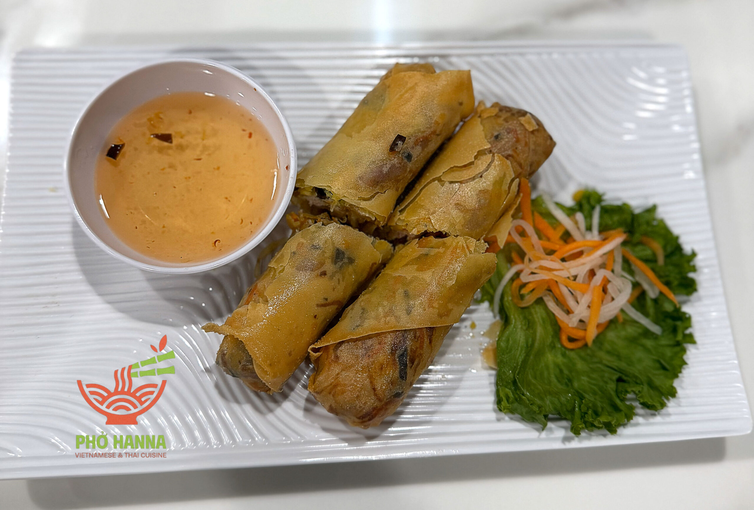 Spring Rolls are light and fresh rolls made with thin rice paper, filled with shrimp, meat, rice noodles, and fresh herbs, served with a flavorful dipping sauce.